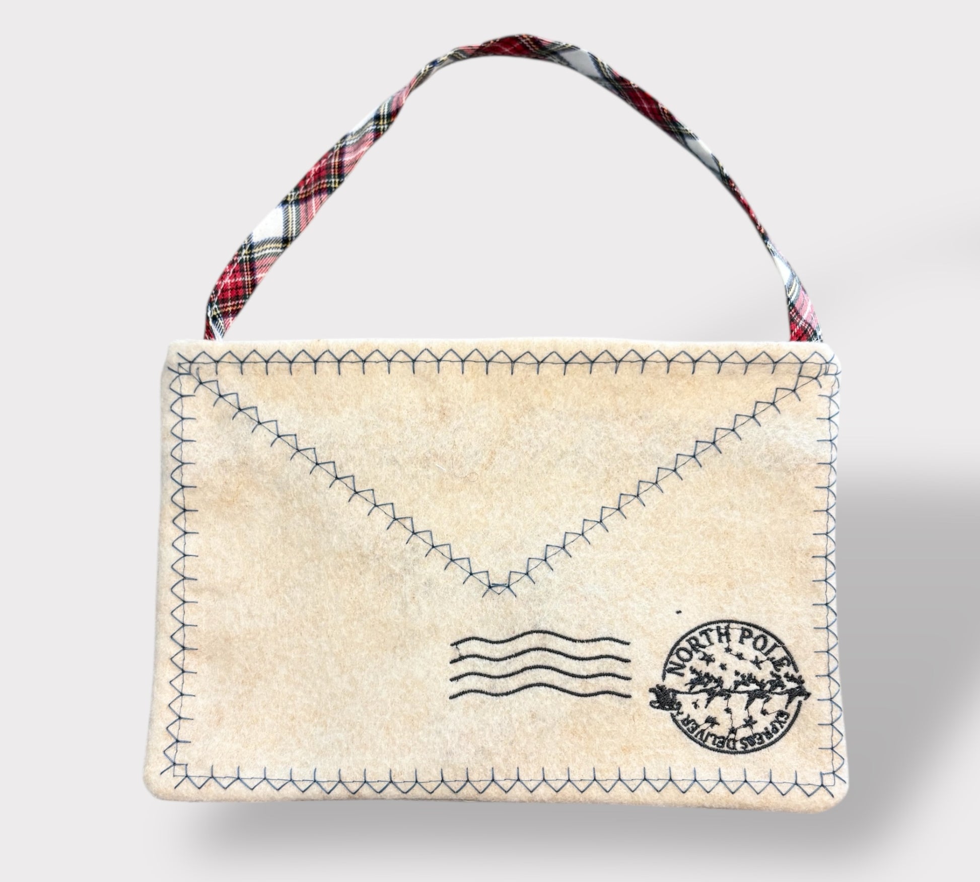 Realizzata in fibra di lana cotta 100% color naturale, questa piccola borsetta ricamata (misure 23 cm x 16 cm) è l’accessorio perfetto per accompagnare i bambini nel momento speciale della letterina a Babbo Natale.